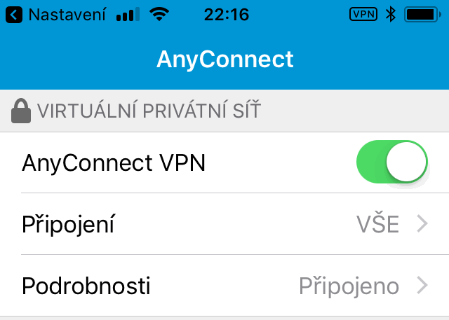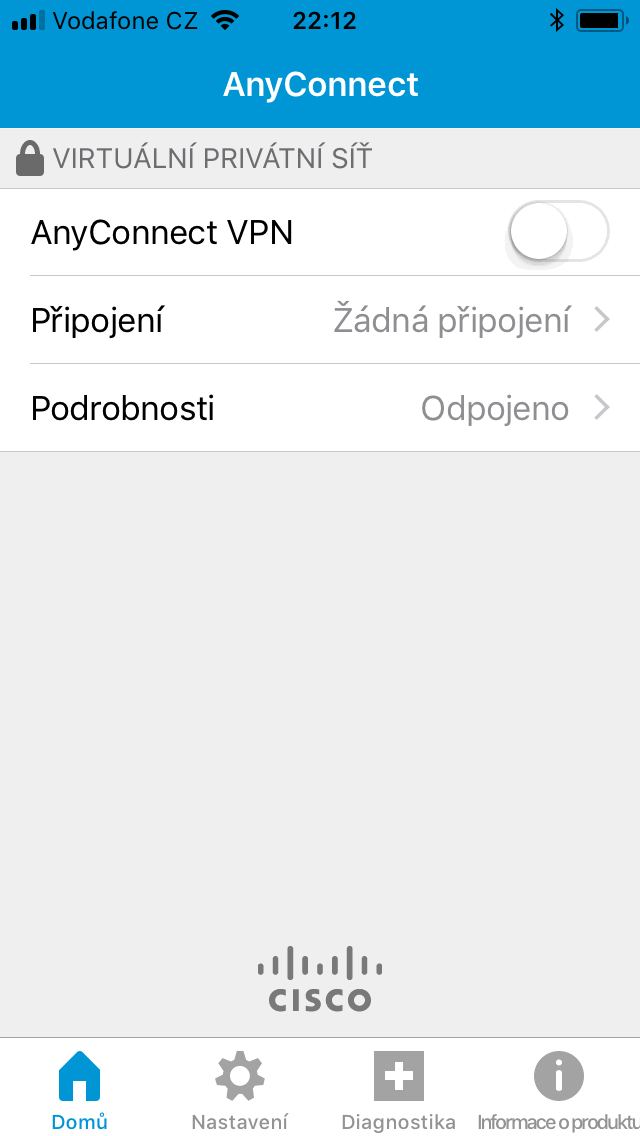 Cisco AnyConnect – vyžaduje iOS 10.0 a novější