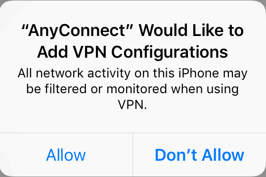 3. Při ukládání se objeví upozornění, že aplikace AnyConnect může monitorovat síťovou aktivitu. Povolte to.