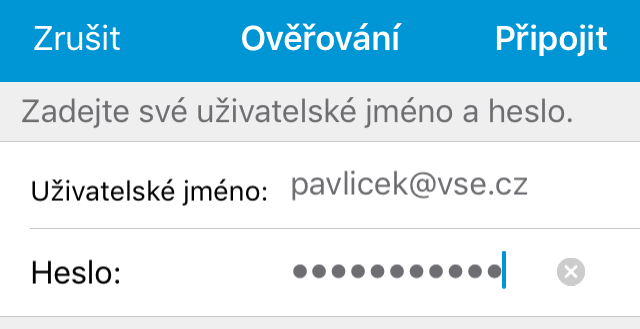 5. Zobrazí se dotaz na uživatelské jméno a heslo. Po zadání klikněte na Připojit.