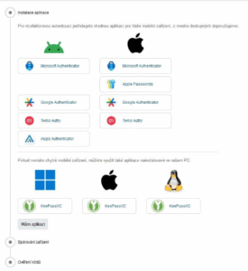 Pokud máte funkční MFA a chcete změnit zařízení pomocí kterého se budete přihlašovat, zadejte kód z ověřovací aplikace.