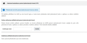Otevřete „Nastavení autentizace pomocí jednorázových hesel“ v panelu „Nastavení informačního systému“.